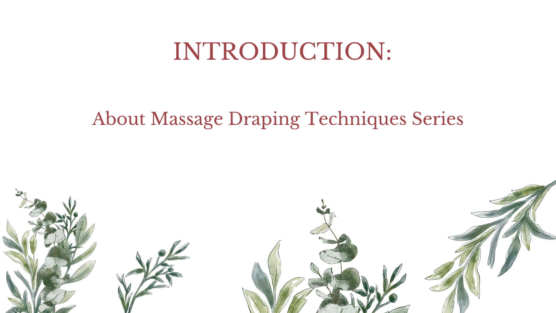INTRODUCTION: About Massage Draping Techniques Series introduces you to the essential practices of massage draping, covering each major area of the body. This short video previews the 8-part series, highlighting how proper draping ensures privacy, comfort, and optimal access for effective therapy. Start here to understand how to elevate your massage practice with professional draping skills.